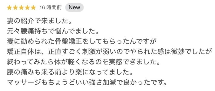 矯正後は身体が軽くなったことを実感いただき、痛みの緩和の実感もありました。