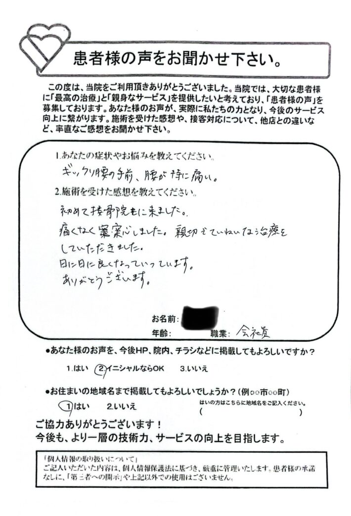 接骨院というと、カタイイメージですが、ソフトで丁寧、安心しました。